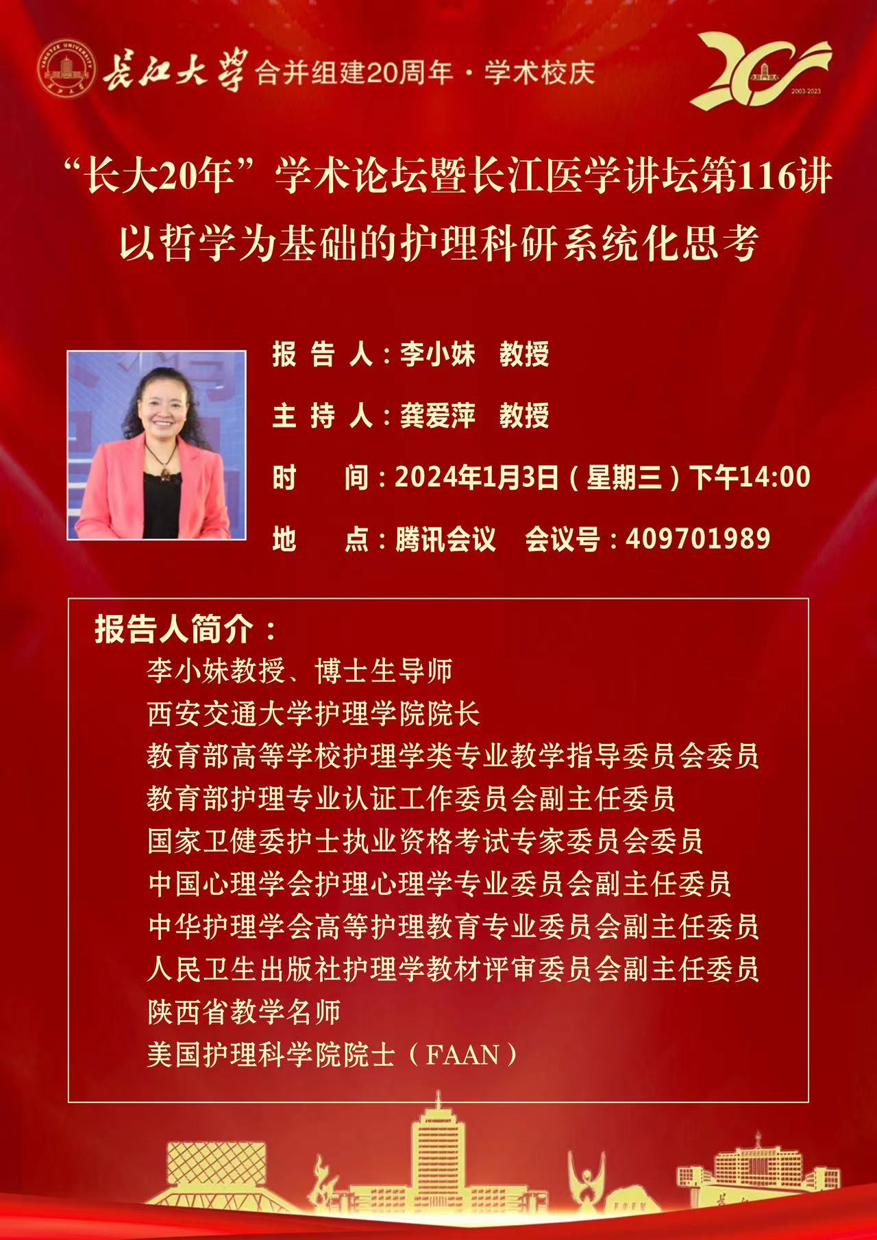 “长大20年”学术论坛暨长江医学讲坛第116讲以哲学为基础的护理科研系统化思考