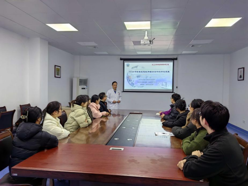 2024年12月27日下午4时,“PET分子影像在恶性肿瘤诊治中的研究进展”学术沙龙活动在长江大学附属第一医院PET中心举行。本次活动由医学部医学影像系黄劲柏教授主讲,聚焦 PET/CT 技术在恶性肿瘤诊断与治疗中的临床应用和研究进展,旨在增进研究生对分子影像学前沿知识的了解,吸引了众多影像医学与核医学专业的研究生和住培学员参与。