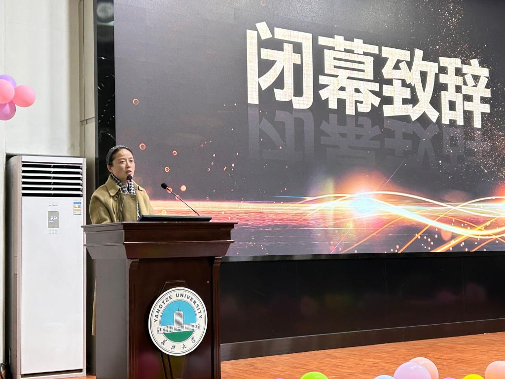 两轮比赛结束之后,医学部党委书记黄群俊老师对本届杏林文化节做闭幕致辞,她首先向组织和参与本届杏林文化节的老师和同学表示感谢,并重点介绍了杏林文化节的丰富内涵,最后向同学们提出了新的希望,希望医学学子能够传承杏林精神,在“尚德勤谨,仁术长新”的院训精神感召下,砥砺前行、奋楫争先,为长江大学双一流建设,为一流医学人才培养贡献青春力量!