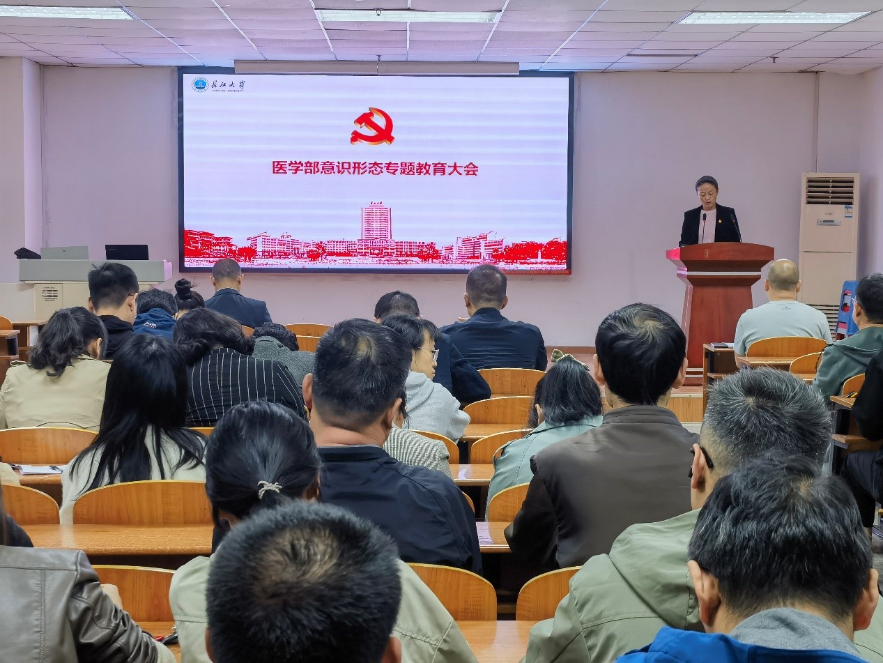 随后,党委书记黄群俊带领全体教职工开展2023年10月政治理论学习,并召开医学部意识形态专题教育大会,强调要牢牢掌握意识形态工作领导权,并对本学期意识形态工作情况进行了通报。最后,对医学部2023年主题教育专题民主生活会开展情况进行了通报。