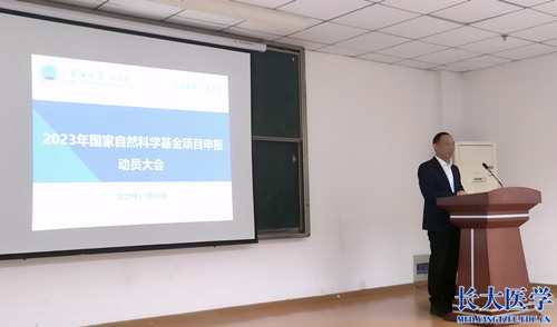 (通讯员:习志江)11月10日下午,医学部2023年国家自然科学基金项目申报动员大会在南410会议室召开。医学部常务副部长龚权、基础医学院副院长胡娅、健康医学院副院长陈晓光,以及全体教师和长江大学部分附属医院相关人员参加会议。会议由龚权主持,采取线上线下相结合方式进行。