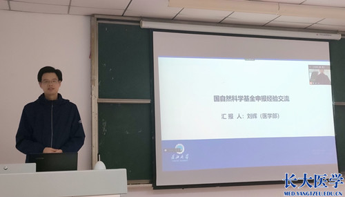 获得2022年国家自然科学基金面上项目的我部教师刘辉博士,现场进行了基金申报经验交流汇报,结合亲身实例从选题新颖、善于模仿、精心写作三个方面分享了自己的成功经验。