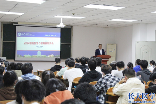 11月1日下午,长江大学副校长、医学部部长毛精华在14教南410学术报告厅为2022级本科新生代表作了题为《崇德笃学、化成天下》的入学教育报告会。学部班子成员、教师代表及部分22级新生参与此次报告会。会议由常务副部长龚权主持。