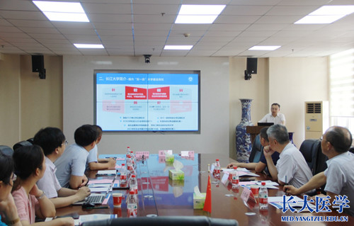 长江大学健康医学院院长兼医学部副部长黄江荣汇报了长江大学医学部学科优势和办学特色。