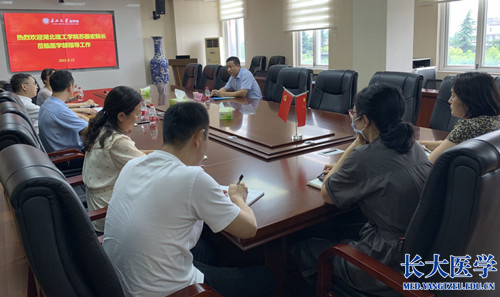 黄江荣结合学部发展历程,从研究生的培养、学位点建设、学科团队建设、医教协同等方面,详细介绍了医学部的做法及一些成功经验。胡娅就医学部留学生教育工作进行交流。王真就学科建设等工作进行了交流。相关科室负责人就教学、研究生招生宣传等工作进行了沟通。