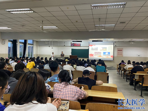 宣讲会首先播放了长江大学征兵宣传片,接下来韦庆同学用自己在新疆某部参军入伍的成长经历将同学们展示了丰富多彩、热血沸腾、激情澎湃的军营生活。蔡佑钦同学重点介绍了大学生入伍、直招士官、复学、学历提升、就业、公务员招考、学费及经济补偿等方面的优抚政策,重点介绍了大学生参军入伍政策待遇以及退役士兵的发展前景。最后,医学部学生事务办黄柏青老师从国家需要、国内外形势以及当代大学生入伍优势三个方面作了详细的政策解读。积极动员大学生应征入伍,激发学生们参军热情。黄老师强调,依法服兵役是法律赋予每个公民应尽的义务,保卫祖国是中华人民共和国每一个公民的神圣职责;大学生应征入伍既是国家发展的需要,也是大学生自我成才的需要。希望同学们积极响应党和政府的征兵号召,踊跃报名应征,到部队中施展才华,为国防事业贡献力量。