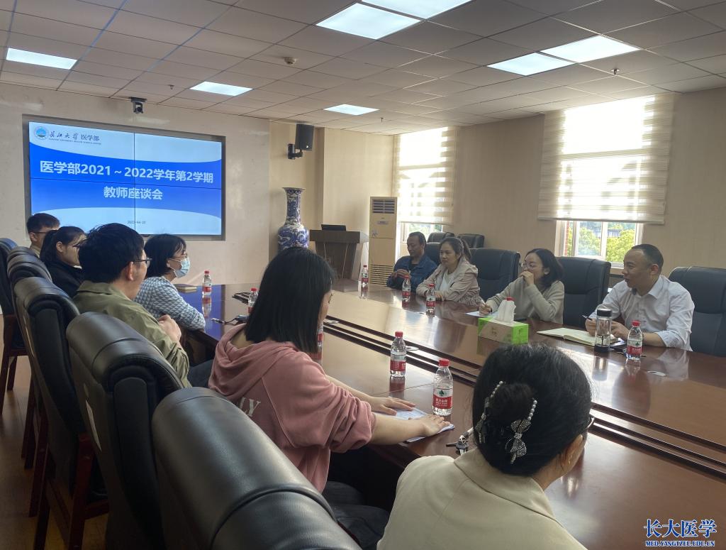 (通讯员:金袁 贺祖启)医学部于2022年4月22日上午召开了教师座谈会,20余名教师代表参会。会议由学院副院长胡娅主持。