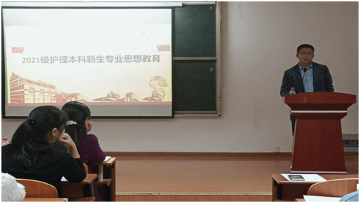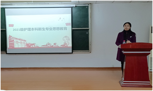 (通讯员 任平祯)2021年10月29日晚7点,在14教南410召开2021级护理新生专业思想教育座谈。医学部副院长陈晓光、副书记张文君,相关职能科室、系、教研室负责人、班主任及学生代表参加会议。护理系主任龚爱萍主持会议。