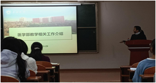 教学办公室主任胡艳红针对人才培养方案、选课、大创项目等教学相关工作做出详细讲解,要求学生慎重对待选课,并祝愿同学们学习进步,学业有成。