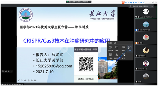 为深入贯彻长江大学研究生教育会议精神,着力提高研究生生源质量的要求,医学部于7月10日上午8:30开展了2021年度全国优秀大学生暑期夏令营活动。活动统筹考虑当前常态化疫情防控要求和实际情况,通过网络会议的形式开展。医学部相关领导、各职能科室、导师代表及来自天津医科大学、湖北大学、湖北民族大学、江汉大学等多所高校和长江大学本校的营员共50余人参加了本次活动。