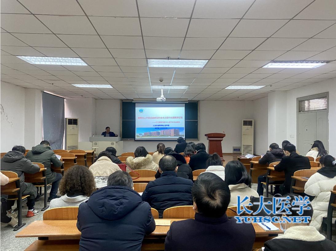 (通讯员 王喆)12月10日下午,医学部党委举办党的十九届五中全会精神宣讲会,深入学习领会习近平新时代中国特色社会主义思想。中共荆州市委宣讲团专家、长江大学人文社科处副处长彭开智教授受邀作专题报告,医学部全体党员同志参与学习。会议由医学部党委书记关辉主持。