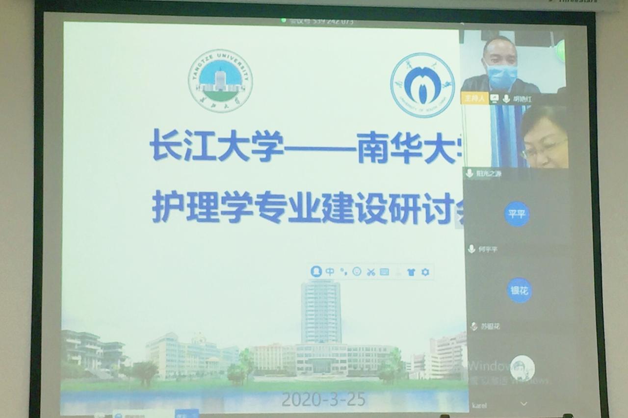 (通讯员 孙鑫章 彭笑)为进一步加强我部护理学一流专业建设,3月25日上午9点,长江大学医学部与南华大学护理学院以网络视频会议的形式召开了护理学专业建设研讨会。南华大学护理学院院长廖力教授、副院长何平平教授、曾谷清教授,长江大学医学部常务副部长龚权教授、副部长黄江荣教授、健康医学院副院长陈晓光副教授以及南华大学护理学院和长江大学医学部护理系全体教师参会,会议由何平平副院长和陈晓光副院长共同主持。