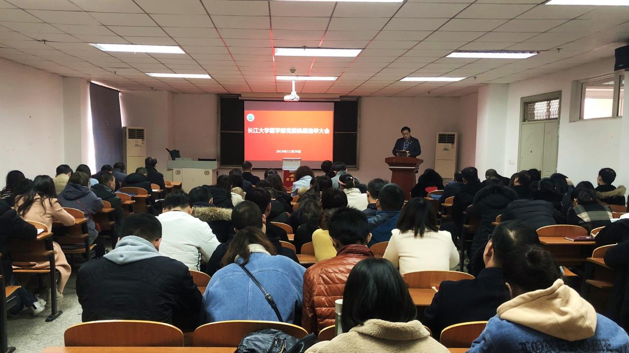 会上,首先由主持人龚权同志向大会报告应到会党员人数123名,实到会103名,符合换届选举有关规定,会议有效。在全体党员合唱国歌后,关辉同志代表上届党委作了工作报告,张文君同志作党费收缴、使用和管理情况报告,黄江荣同志宣读《中共长江大学医学部委员会换届选举办法(草案)》。