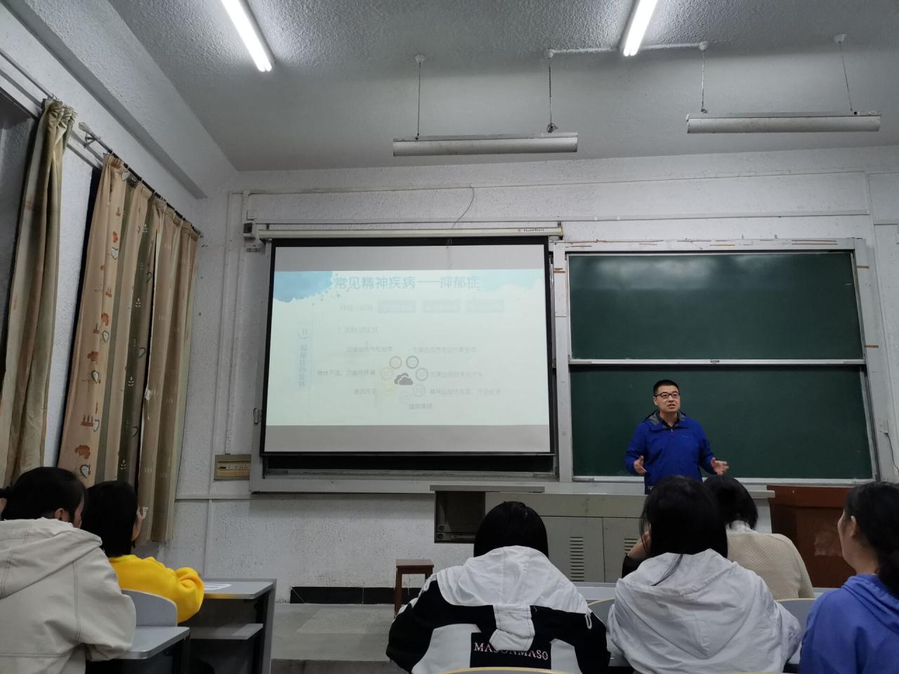 本次培训讲座以“大学生心理危机的识别与应对”为主题,旨在让学生干部进一步了解心理健康的重要性和技巧,更加明确所肩负的责任。张老师首先让同学们认识了什么是心理健康,以幽默风趣的语言为我们讲解了定义、表现以及如何自测;之后张老师讲解了如何识别心理问题,向大家介绍了大学生常见的心理问题及判断方法,并结合几个事例为我们讲解了抑郁症、躁狂症和精神分裂的相关知识。