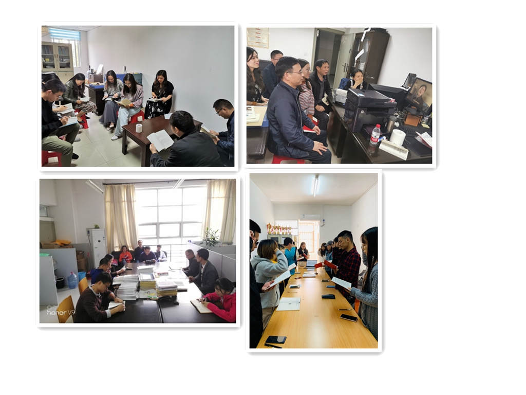 10月29日-31日,医学部8个党支部在分党委的统一安排下,开展10月份第二次党日学习活动,学习《习近平关于“不忘初心,牢记使命”论述摘编》、《中国共产党章程》、张富清同志英雄事迹,并对照党章党规找差距。