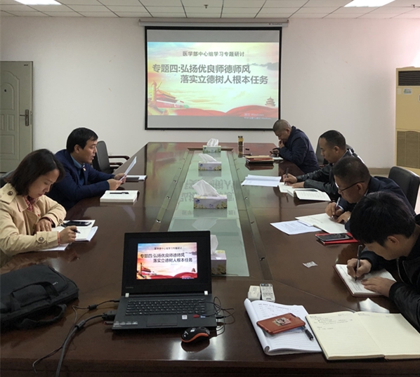 (通讯员:王乾 赵恒园)2019年10月15日上午10点,医学部党委委员在14教南615进行“不忘初心、牢记使命”主题教育专题四的学习研讨活动。专题研讨由医学部党委书记关辉同志主持。