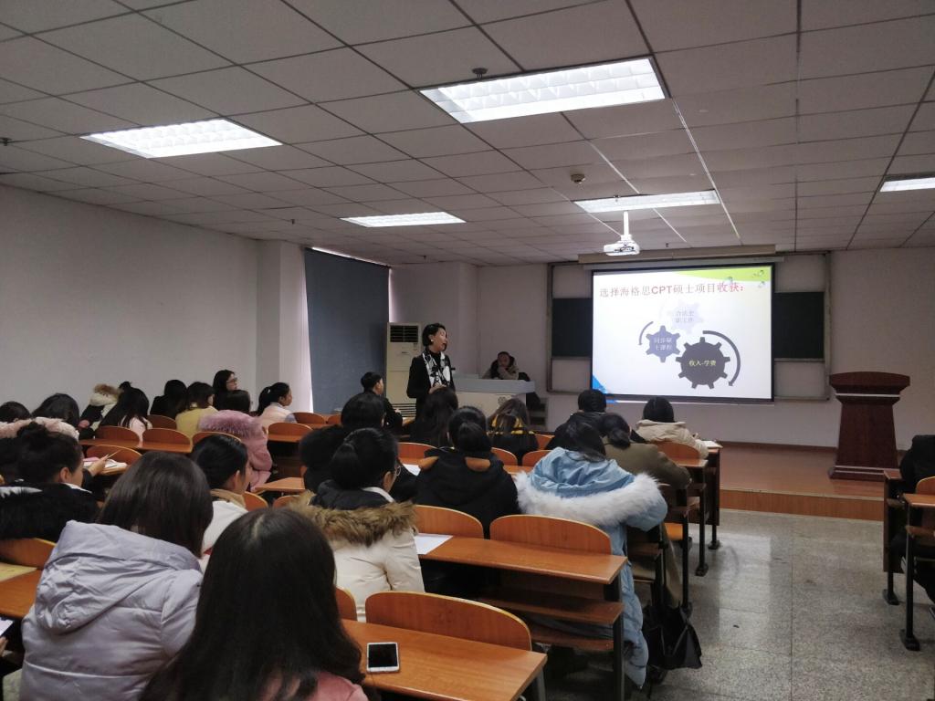 谭春梅老师首先介绍了美国海格思大学护理专业的发展前景以及美国目前急缺护理专业人才的现状,随后详细解读了学校针对海外学生的帮扶和资助政策。比如学生家庭经济情况不太好,学校支持学生在学习以外的时间做兼职并介绍工资较高的工作,其工资基本可满足日常生活,并且学校每年也会有可观的奖助学金发给符合条件的学生。对于英语口语能力欠缺的同学,学校会开展入学前英语口语学习培训,直至学生考试合格为止。最后,谭老师播放了美国海格思大学的介绍视频,让同学们更直观的了解到了美国海格思大学的实力和环境。