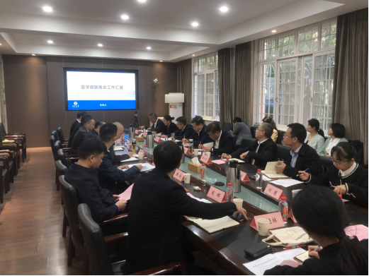 2024年11月6日上午9:00,医学部在6教205会议室召开以“融合创新 赋能医学学科发展”为主题的部务会。校长刘勇胜,副校长毛精华,学校发展规划与学科建设处、人力资源部、本科生院、研究生院、科学技术发展研究院、计划财务处、平台与实验室管理处、工会、第一临床学院、第二临床学院、第三临床学院相关负责同志参加了会议。会议由医学部党委书记黄群俊主持。