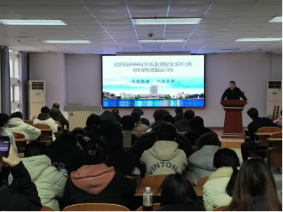 细化部署,扎实实习保障。实习办程松详细讲解实习方案,包括报到安排、考核标准及请假流程等相关管理规定,同时特别提出租房安全建议,并通过现场问答形式解答学生关于实习时间、岗位分配等具体问题。