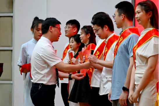 典礼在庄严的国歌声中拉开帷幕。黄群俊书记宣读表彰文件,对优秀毕业生表示祝贺并颁发荣誉证书。