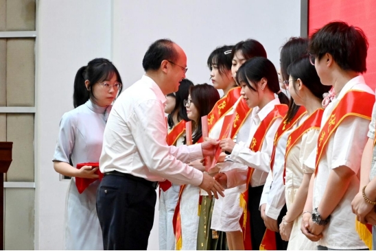 随后举行医学部2025届毕业生学位授予仪式。毛精华教授,龚权教授,梅京松教授,孙亚凌教授,谭小平教授、陈晓光教授等为毕业生们正冠拨穗、颁发学位证书。