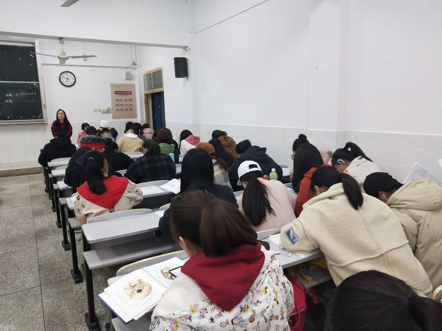 7:00,5号教学楼的教室,书声朗朗,早操做完后,同学们急忙进入自习教室开始了早读。晚上7:00,14教教室,2018级的学生开始了晚自习,听听力、写作业、背单词......学生们都忙着学习充电....