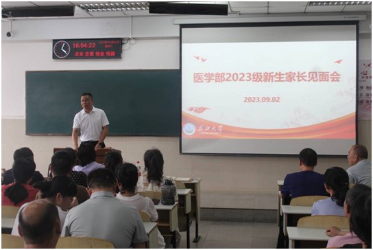 为进一步加强家校沟通,与家长建立紧密联系,家校联动,共育英才。9月2日下午,医学部2023级新生家长见面会在12教301举行。健康医学院院长兼医学部副部长陈晓光详细介绍了医学部学科设置、专业建设、教学管理等工作,以学生未来发展为出发点给出了建议。会后,新生家长与学部领导就自己关心的话题展开了进一步交流,学部领导对家长们所提出的问题进行详细的解答。