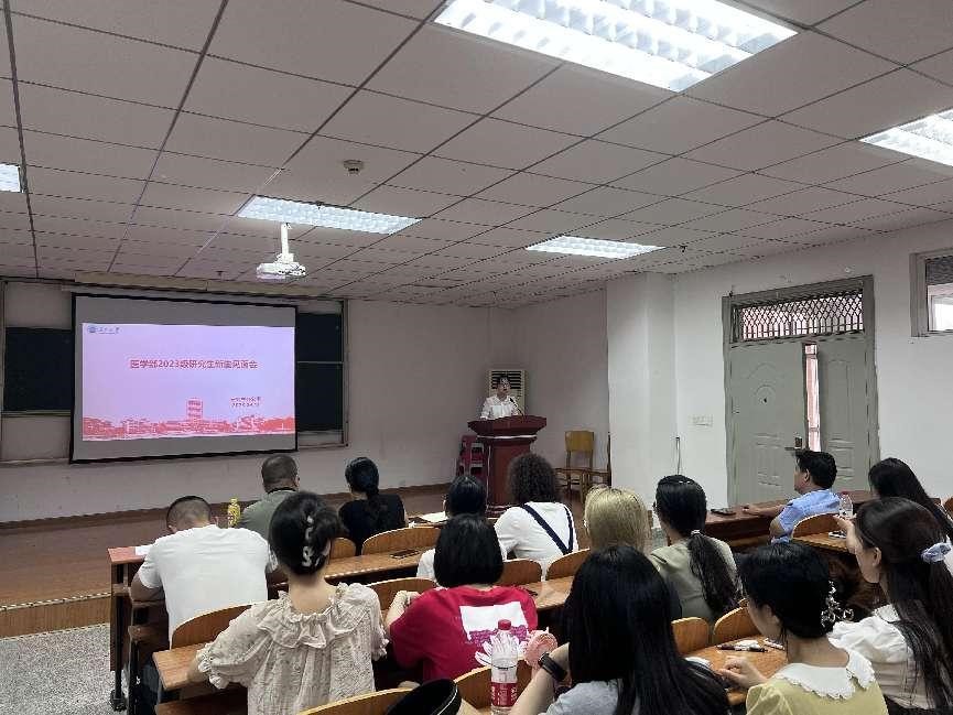 金秋九月,新生初至,为了让2023级研究生更好地适应学校环境,同时对整个研究生学习阶段有一个全面的了解,9月11日下午2点,医学部在14教南410学术报告厅举行了2023级研究生新生见面会。医学部研究生培养主管领导、导师代表、相关职能科室以及全体 2023级研究生参加了本次会议。