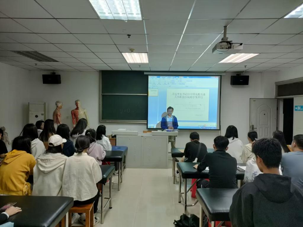 (通讯员 刘伟、曾芝琳)为进一步学习贯彻习近平总书记给中国农业大学科技小院的同学们回信精神,5月7日医学部组织了“厚植爱农情怀,练就兴农本领“主题班会,领会回信的核心要义和精神内涵。医学部全体学习小组成员、班主任和本科生参与本次学习,通过读回信原文、视频观看和讨论等方式,确保学习教育活动入脑入心,培养青年学生担当奉献精神。