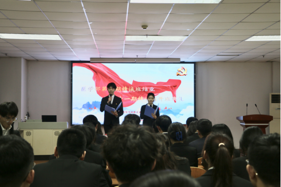精诚班班主任王乾老师讲解下届精诚班人才培养计划,让新学员们更全面地了解精诚班,培养自身“信仰坚定,五术兼备,大医精诚,厚学致新”的“精诚之魂”。随后,第十期“优秀学员”邵微介绍她在精诚班的学习成果,积励众学员继续发扬精诚班的优良传统和作风,不断学习、不断进步、不断超越自我,为实现中华民族伟大复兴的中国梦贡献自己的青春和力量。