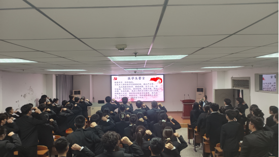 校团委组宣部部长张鑫老师为第十一期精诚班授旗,“健康所系,性命相托”,全体精诚学员面对班旗许下铮铮医学誓言。