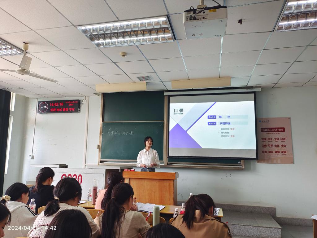 (通讯员 彭笑 陈娜娜)医学部于4月25日下午在13教C219、C220教室举办了2023级护理硕士专业学位研究生讲课比赛,30名研究生参加了比赛。比赛评委由医学部专任教师和2020级护理本科生担任。