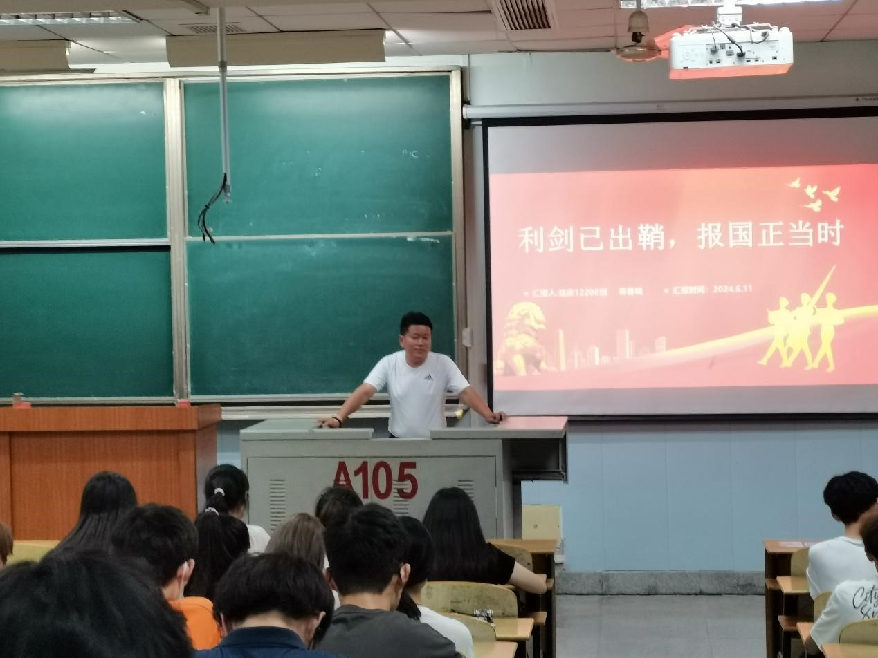 为激发医学部学生参军入伍热情,把爱国之心化为报国之行,把芳华青春融入钢铁长城,2024年6月11日晚7时,医学部在13教A105教室开展了2024年春季征兵入伍宣传活动。
