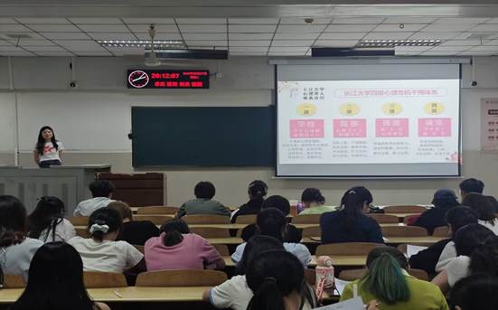 讲座最后,廖老师详细介绍了长江大学的心理育人体系以及学校心理中心的地址、联系方式及预约方法。