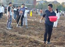 各班级以小组认领“责任田”,小组中各成员分工明确,挥锹深耕、把控播种密度、开挖灌溉沟、覆土踩实,互助氛围浓厚。学子们也领悟到,这与未来医疗小组协作相通,需各司其职、互帮互助。