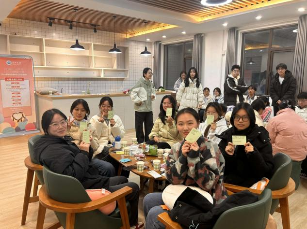 趣味活动落幕后,同学们在心育部成员发放的心灵卡纸上写下活动感悟、成长期许与真挚祝福。一句句真诚的分享,让心灵在坦诚交流中紧紧相依,进一步深化了同辈间的情感联结。活动尾声,心育部成员总结了此次茶话会的举办成效,向师生的支持与参与表示感谢,并发出持续参与心理健康活动的诚挚邀约,一张张灿烂的笑脸定格下这场暖冬里的温情瞬间。