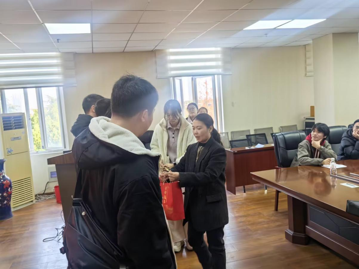 最后,与会领导、老师们向在场考研学子发放了精心准备的“考研加油包”。定制文具套装、大吉大利的橘子、补充能量的咖啡以及送去温暖的暖手贴。每一份礼物都寄托着学校对学子们细致入微的关怀。同学们笑容洋溢,纷纷表示:“礼物太暖心了!不仅实用,更让我们感觉到不是一个人在战斗。”