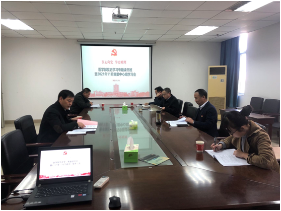11月18日,医学部党委理论学习中心组在14教东615会议室组织开展十九届六中全会专题学习会暨2021年11月政治理论学习。活动由分党委书记关辉主持,全体中心组成员参加了本次会议。