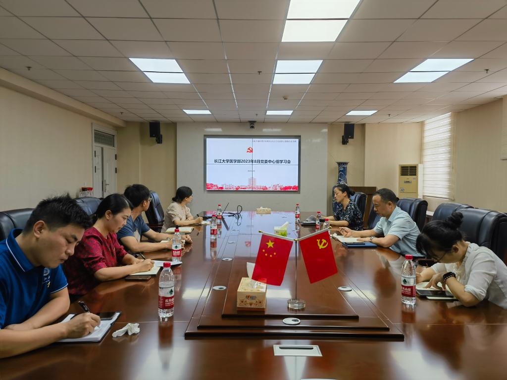 8月25日上午,医学部党委理论学习中心组在14教南502会议室召开2023年8月政治理论学习,会议由医学部党委书记黄群俊主持。