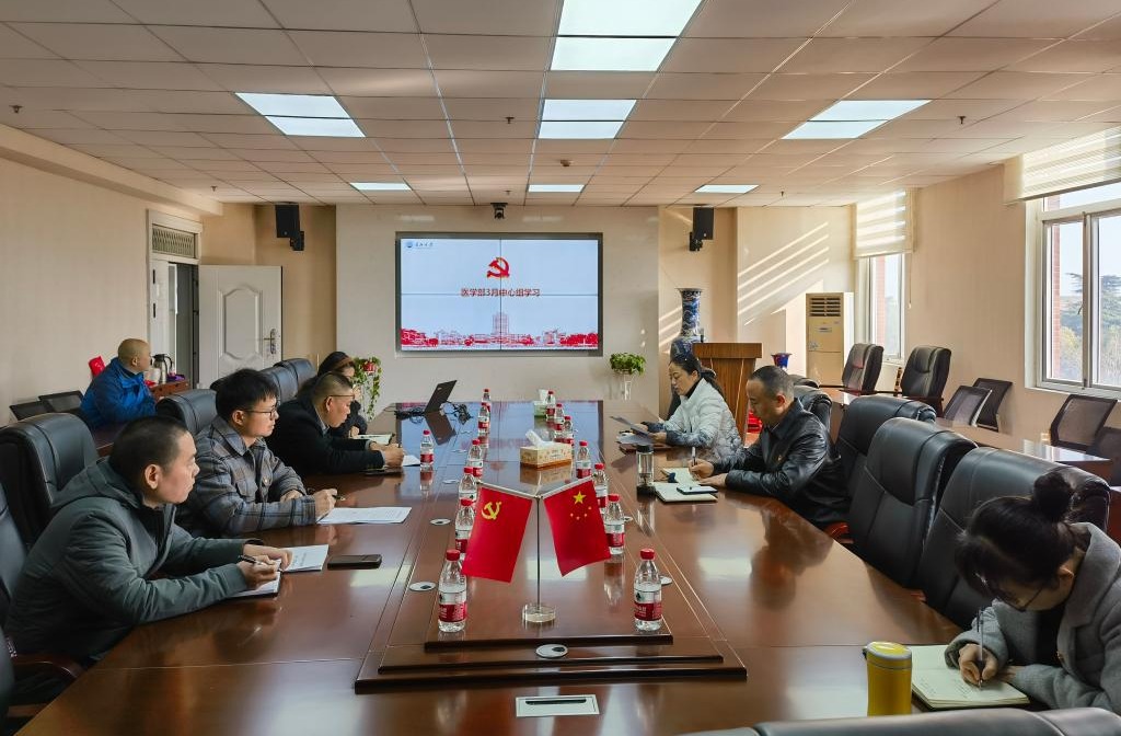3月11日上午,医学部党委理论学习中心组在14教东502会议室召开2024年3月政治理论学习,会议由医学部党委书记黄群俊主持。