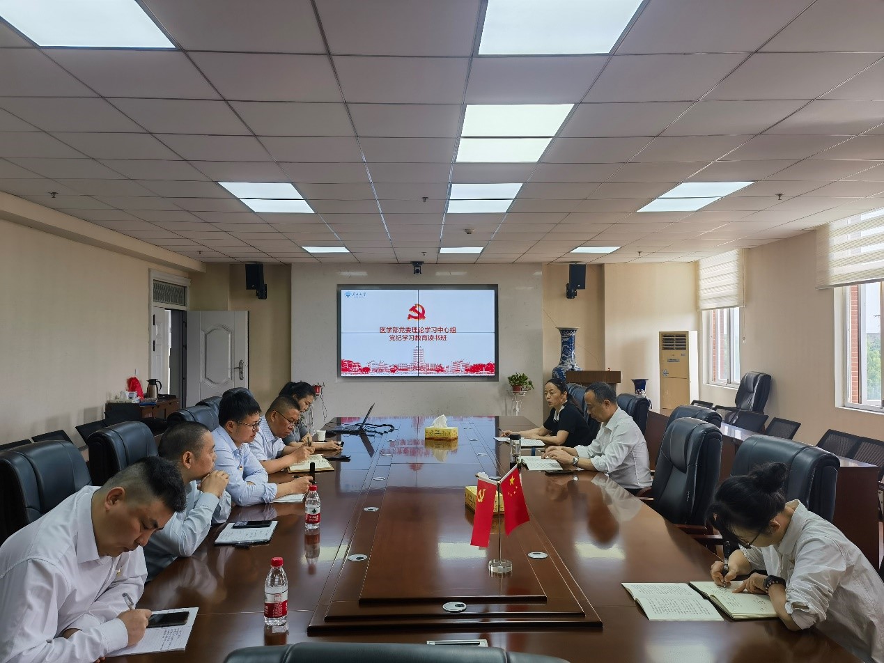 5月6日上午,医学部党委理论学习中心组在14教东502会议室开展党纪学习教育读书班第三次集体学习,会议由医学部党委书记黄群俊主持。
