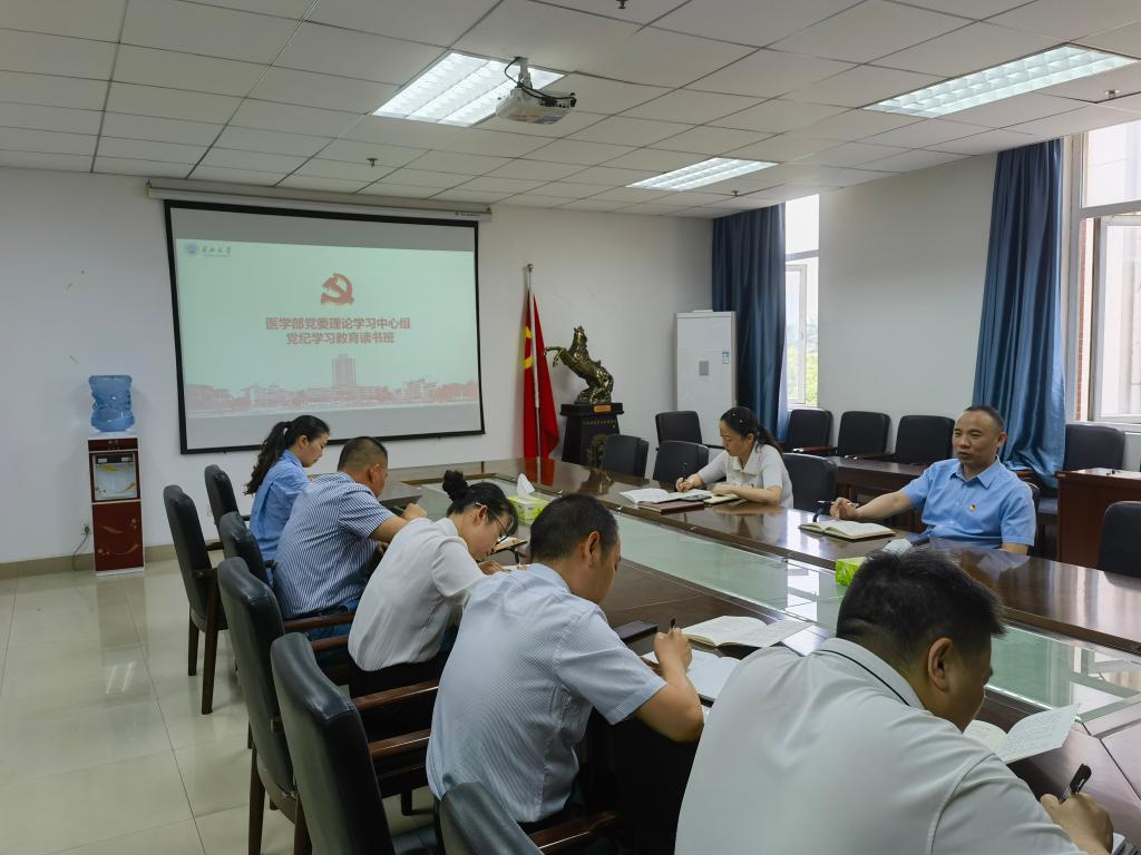 5月20日上午,医学部党委理论学习中心组在14教南615会议室开展党纪学习教育读书班第五次集体学习,会议由医学部党委书记黄群俊主持。