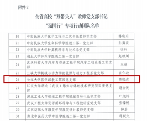 近年来学部教工第二、第三、第四党支部获批学校“示范党支部”和“双带人”培育创建立项,教工第三党支部获批荆州市“红旗党支部”称号,2024年教工第四党支部获批全省高校“双带头人”教师党支部书记“强国行”专项行动团队。