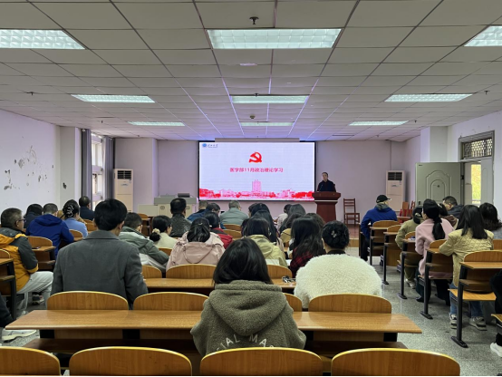 11月21日下午,在14教410会议室召开教职工大会暨11月教职工政治学习会议,医学部全体教职工参加会议,会议由党委书记黄群俊主持。
