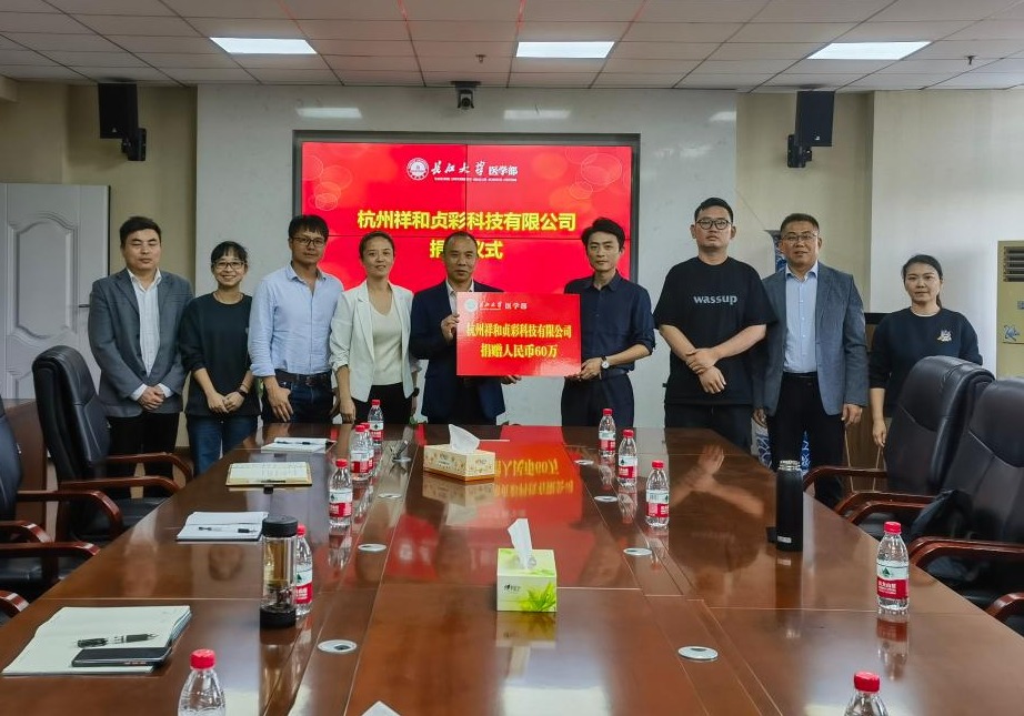 10月23日下午,杭州祥和贞彩科技有限公司捐赠仪式在14教东502室举行。仪式由医学部副部长、健康医学院院长陈晓光主持,医学部领导班子集体参与。