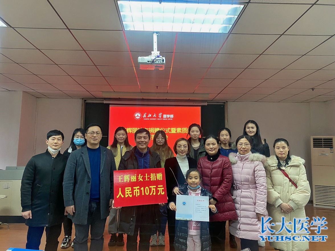 (通讯员:王喆)2020年12月22日下午2:30,王辉丽校友捐赠仪式暨素质教育报告会在14教南410举行。会议及捐赠仪式由医学部党委副书记张文君主持,校友工作与对外联络处处长孙启军、医学部常务副部长龚权、医学部党委书记关辉、护理系教授周红、护理系主任龚爱萍以及护理系的部分老师及同学参与。