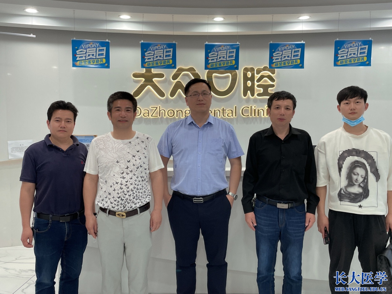 (通讯员 黄柏青)2022年4月27日上午,医学部党委副书记张文君、预防医学系主任张晓芳教授、学生事务办主任黄柏青、团委书记王乾一行4人到荆州大众口腔医疗有限公司开展访企拓岗工作。荆州大众口腔医疗有限公司总经理黄勇代表公司和医学部领导进行了热烈交流与讨论。校企双方在热情友好的气氛中就人才培养、校企合作,业务培训、联合开展文娱体育活动等方面开展了广泛交流。双方签订了就业基地建设协议书,达成了诸多战略合作意向。