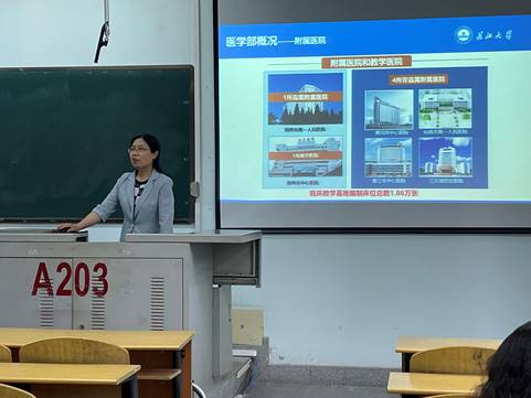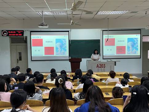 接着孟老师邀请了护理18级邱添和向琴学姐为同学们讲述她们自己的考研经历和经验。邱添同学以自身实习经历和考研经验告诉同学们一定要自己寻找合适的平衡方法,考研和实习并不冲突。向琴同学制作了细致的PPT,从考研计划、择校到调剂,向同学们传授了丰富的经验,同学们受益匪浅。
