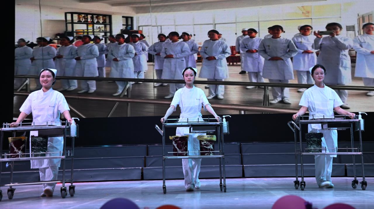 本次大赛共有八支代表队,各支参赛队伍尽显风采,用舞蹈、情景剧、朗诵等方式来表达对护理人员在国际护士节这个特殊节日的祝福。同时,将护士职业礼仪知识应用其中,完美展示了护士仪容仪表、站姿、坐姿、行姿、蹲姿、端治疗盘、持病历夹、推车行进、陪同引导、搀扶帮助等礼仪技巧,将优美的仪表、端正的态度、亲切的语言、优雅的举止融入每个环节,将护士礼仪在日常临床工作中的表现进行了精彩的展示。最终经过的角逐,护理12101班获得了本次大赛的一等奖 。