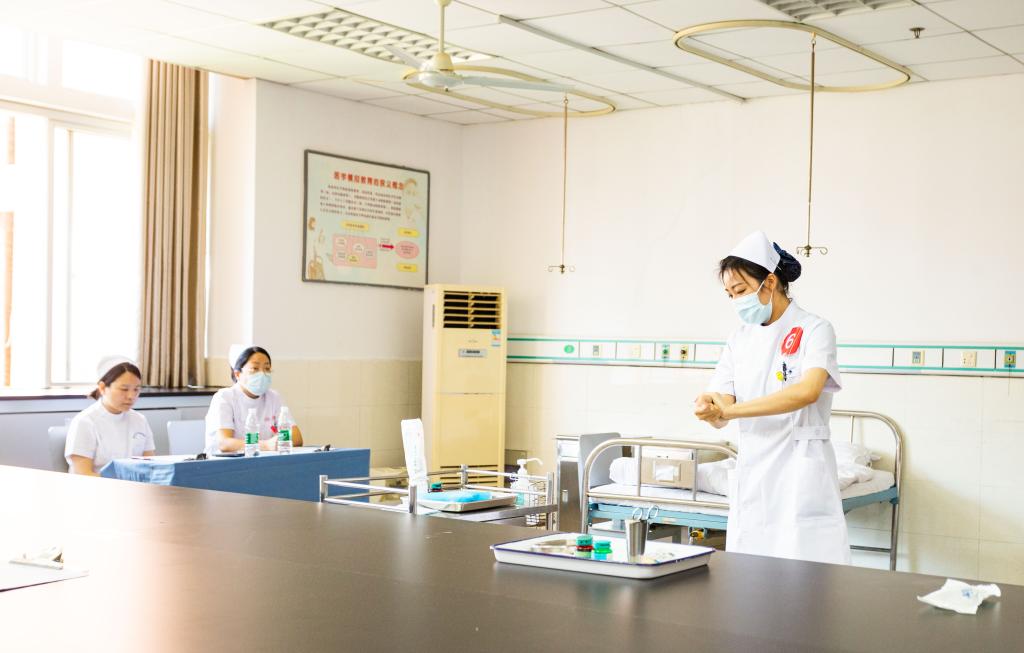大赛共有五个项目,徒手心肺复苏、密闭式静脉输液、铺无菌盘、生命体征测量、穿脱隔离衣。参赛选手按照抽签号依次进行,并在规定时间内完成护理流程和操作。比赛现场气氛紧张而激烈,选手们动作规范准确,技术娴熟,展现出良好的应变能力和心理素质。评委们认真观察每一个操作细节,严格、公平、公正地评分。比赛全程秩序井然,选手们精神饱满。经过激烈角逐,刘泽辰、宋琳、徐慧玲等7名同学分别获得所参加项目的一等奖。